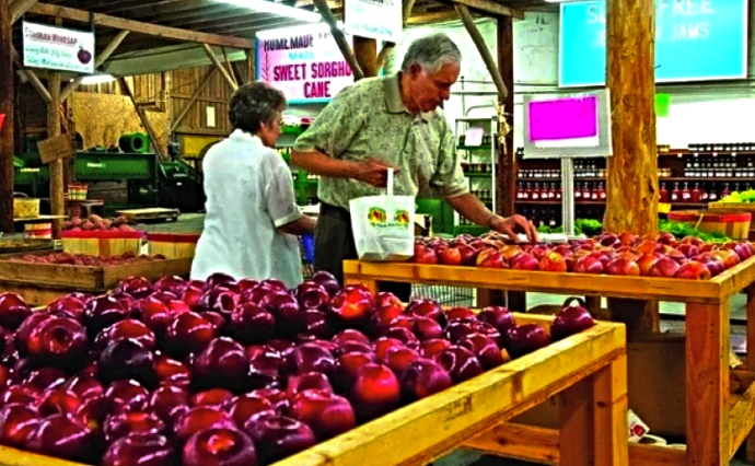 Visitors can try their apple cider and ice cream, buy souvenirs at the general store, get a jump on holiday shopping at the Christmas and Candle Shop, or sample the sweet fruit wines at the Winery.