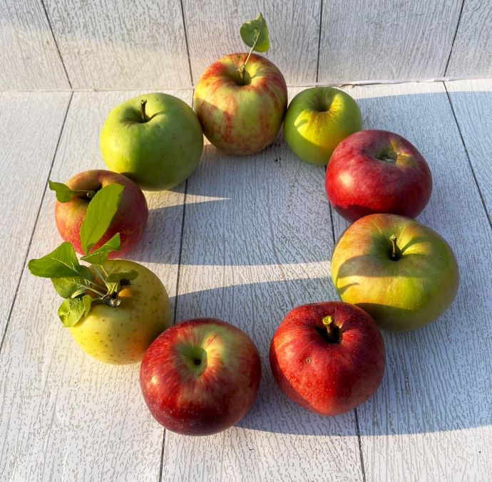 They have a ton of different apple varieties to choose from. Some favorites include Golden Delicious, Honeycrisp, Fuji, Mutsu Crispin, Idared, Cameo, Pink Wonder, and Wolf River.