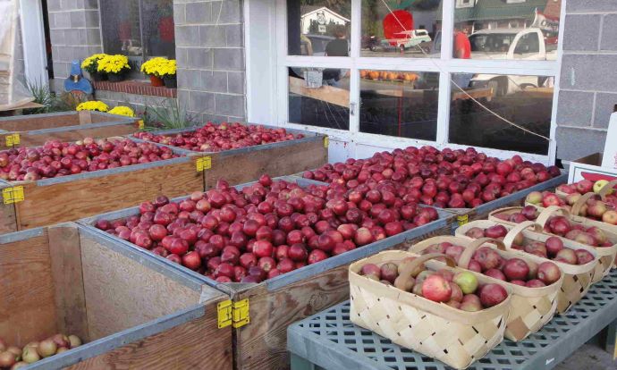 Along with apples, you can also purchase honey, hams and bacon, jams and jellies, apple cider, syrups, and more.