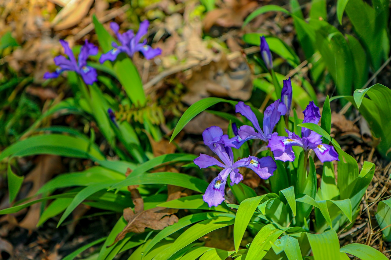 Starting around mid-April, you can see some pretty spectacular blooms of North Carolina wildflowers, including native plants such as Dwarf Crested Iris, Foamflower, Spring Beauties, Wild Geranium and Yellow Water Buttercups.
