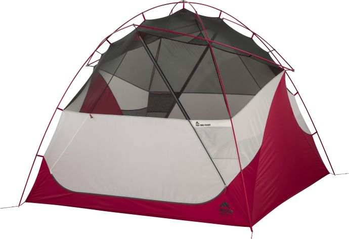 The tent has two doors with wide openings, and the large front rainfly door can either be rolled out of the way, moved to the side for partial coverage, or turned into a shade cover with 8-foot MSR Accessory Poles (sold separately).