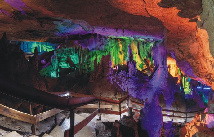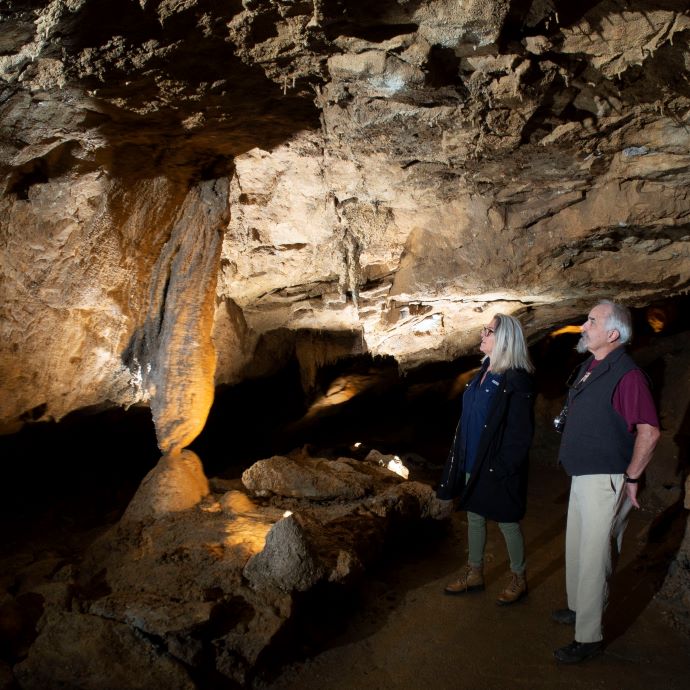 These caverns have well-lit walkways that help guide you through the various chambers and along the banks of the ancient underground river in one of the oldest caves in east Tennessee.