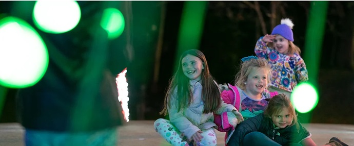 This annual spectacle invites guests to bask in the glow of trees alight in the Under the Stars Outdoor Lounge, then journey into Snowy Nights in My Big Backyard to twirl beneath falling snow.