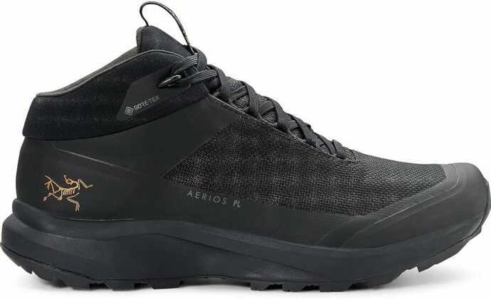 If you’re looking for a great choice for women’s hiking boots, start with the Arc’teryx Aerios FL Mid GTX women’s hiking shoe.