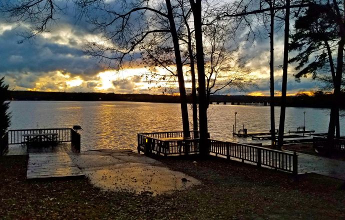 The western side of the lake is home to Moccasin Creek State Park, which boasts a campground, hiking trails, a playground, a boat dock/ramp, picnic shelter, beach volleyball, and much more.