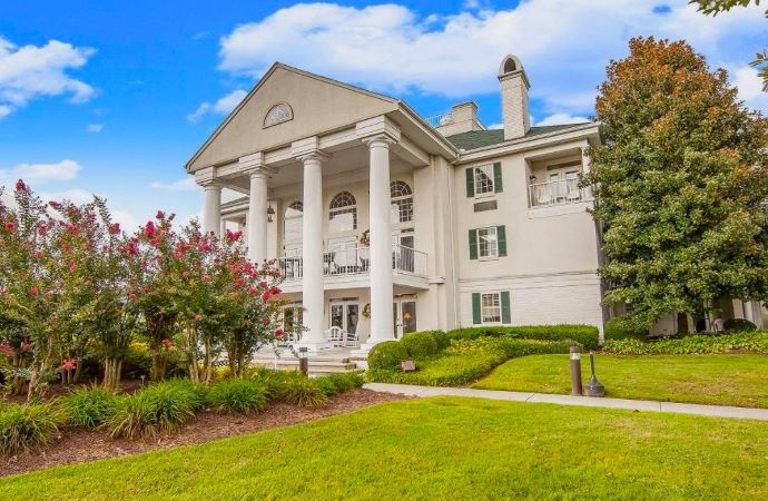 The Clarion Inn has large columns with a grand porch and balcony that give it the look of a stately home. It also has an indoor and outdoor pool, a lazy river, free continental breakfast, and a fitness center.