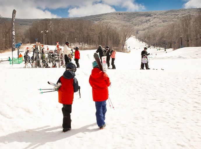 With a summit elevation of 1750 feet and a vertical drop of 500 feet, there are 8 different ski runs, with 5 lifts servicing them. For newbies, the resort offers lessons from certified members of the Professional Ski Instructors of America.