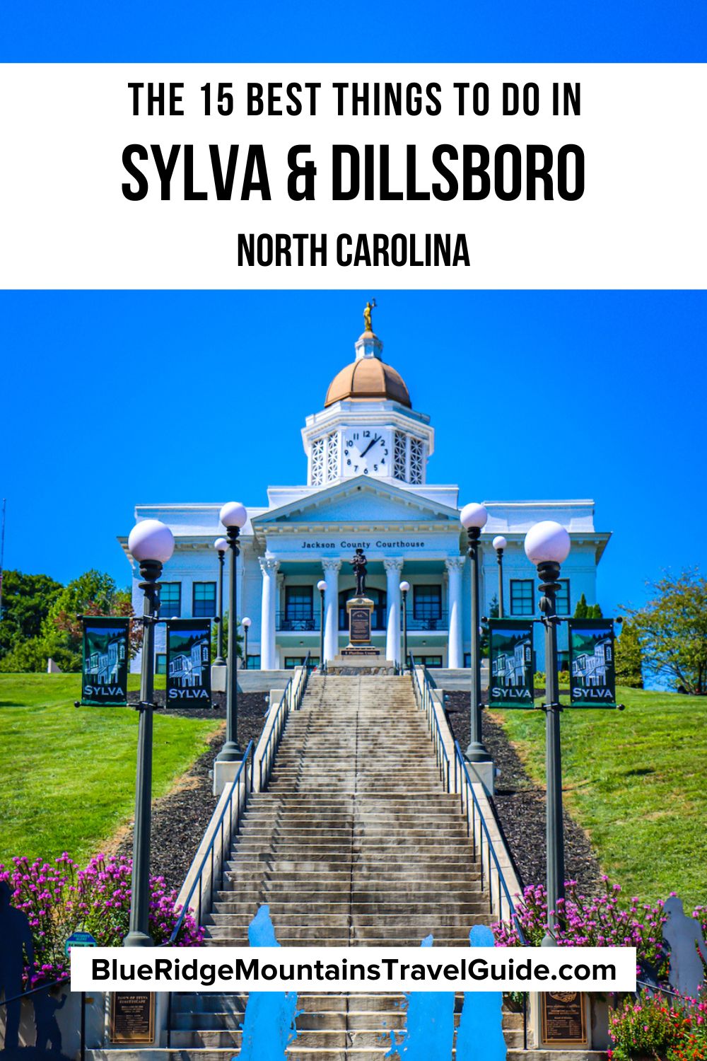If you drive through the town of Sylva, you can’t miss the Historic Jackson County Courthouse, which stands high on a hill overlooking the downtown business district.