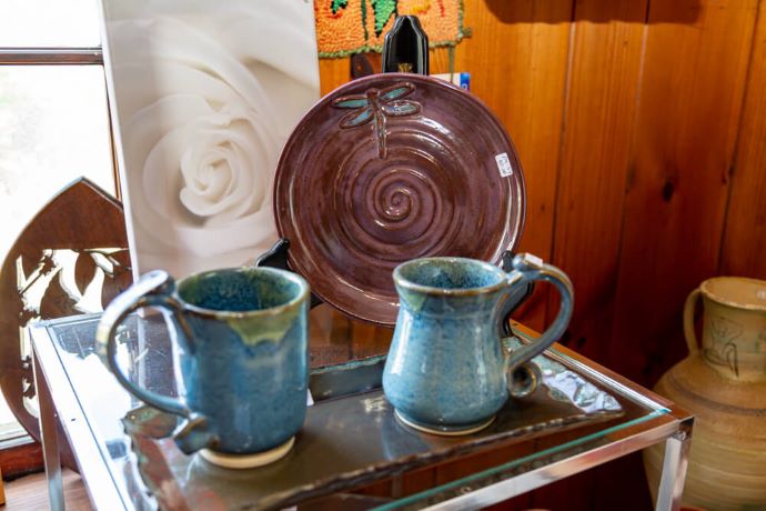The shop carries locally crafted products, such as body care items, jewelry, and apothecary goods.