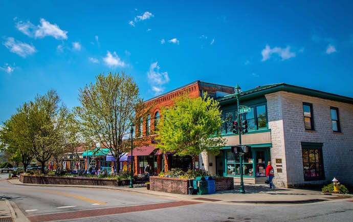 Located right off of I-26 heading south from Asheville NC, Hendersonville has an authentic small town feel, but with a more significant Main Street than other NC towns on this list.