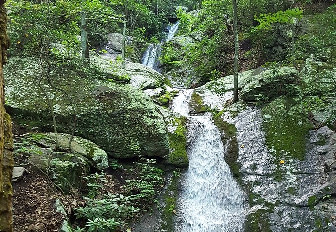 Access to both waterfalls starts near the Slacks Overlook at BRP Milepost 20. It’s always great to find two top falls so close together on the Virginia waterfalls map.