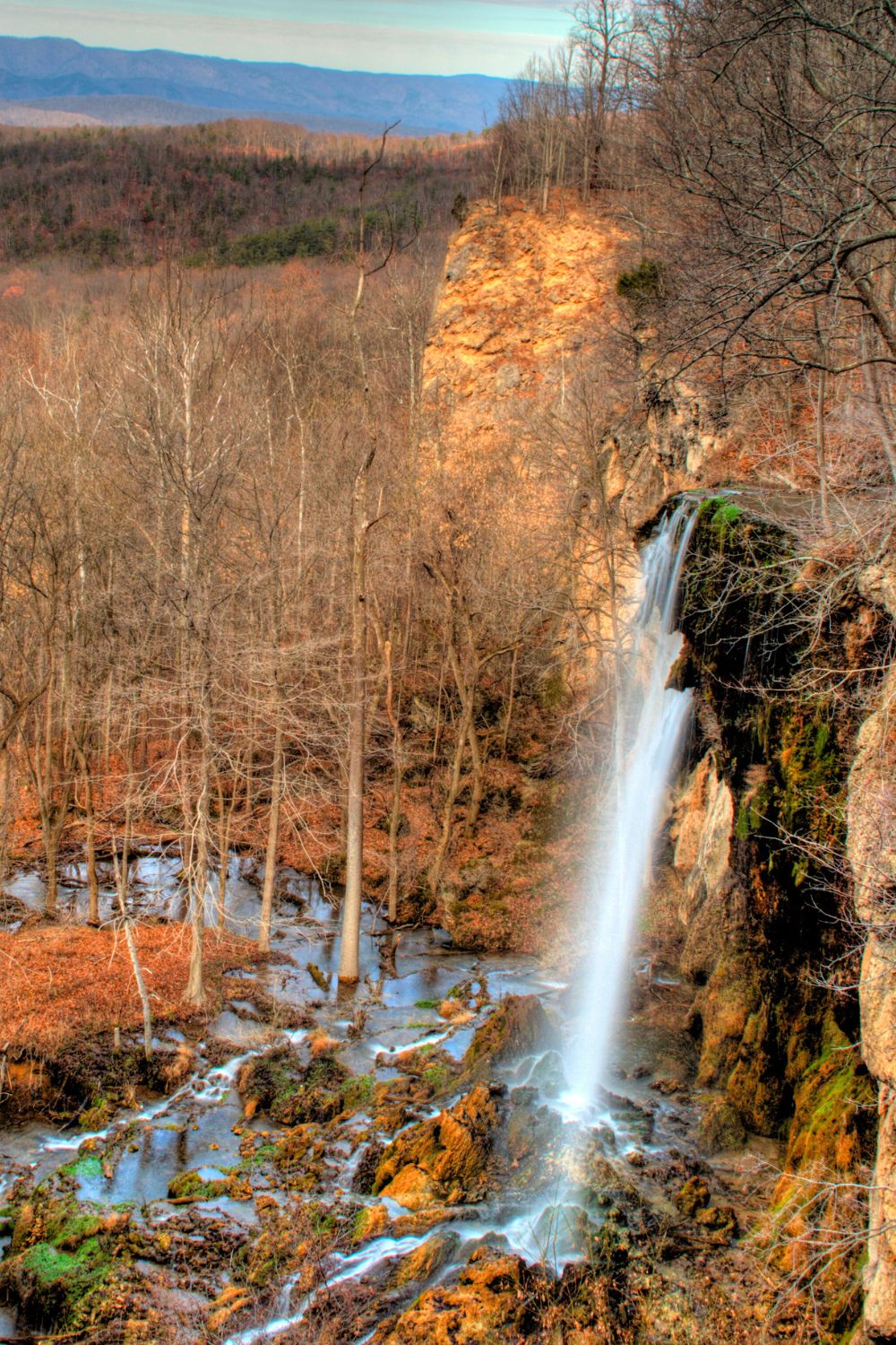 With an additional 1.5 miles of hiking on steep, rocky terrain, adventurous hikers can get to the base of the falls.