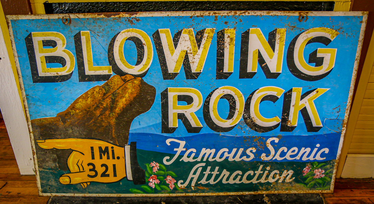You’ll find antique signs for The Blowing Rock, mid-20th century photos of the attraction, and historic photos of the “Village of Blowing Rock.”