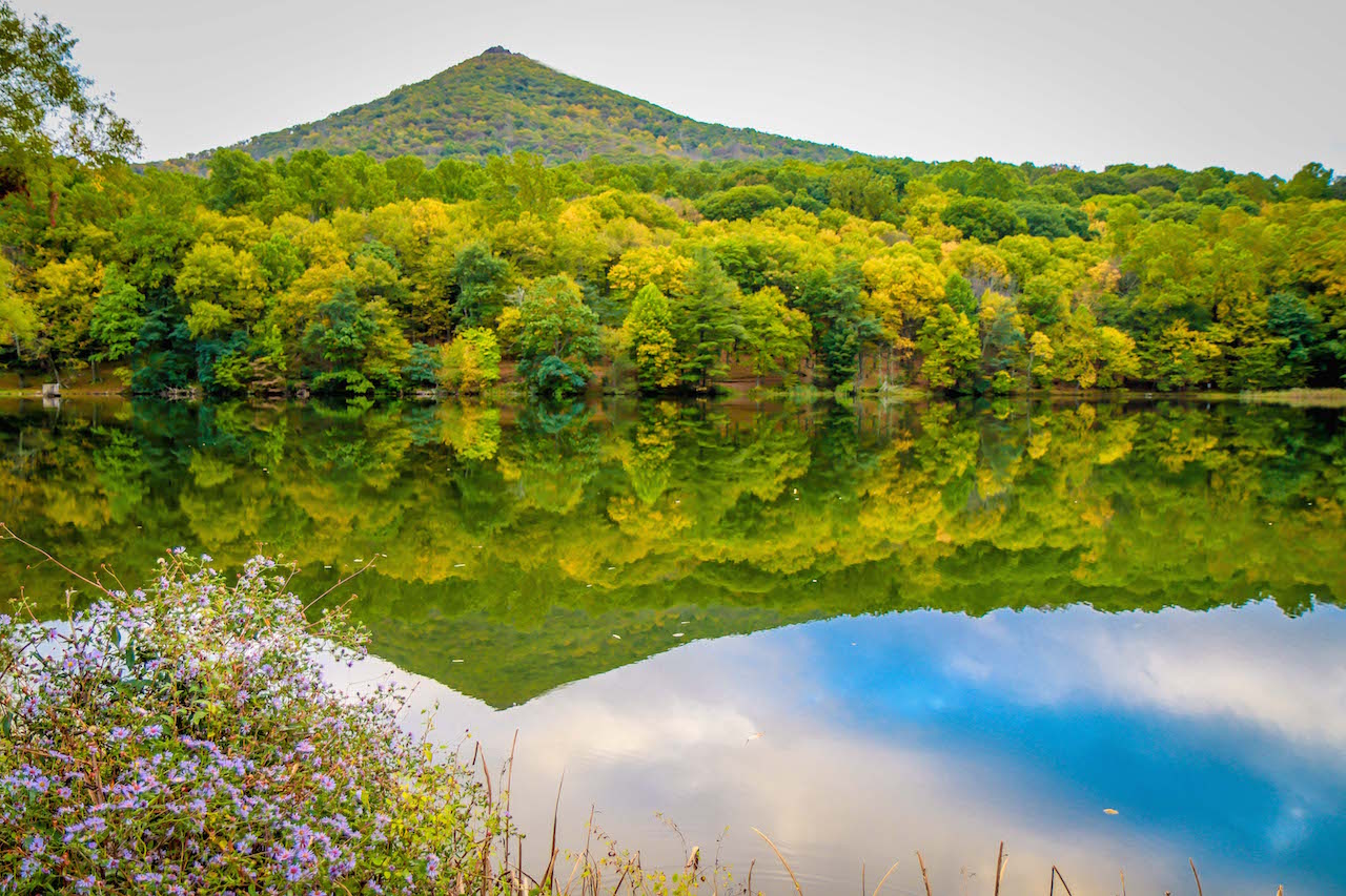 One of the lowest spots along the Blue Ridge Parkway, the Otter Lake Overlook is a departure from the high-flying expansive views.