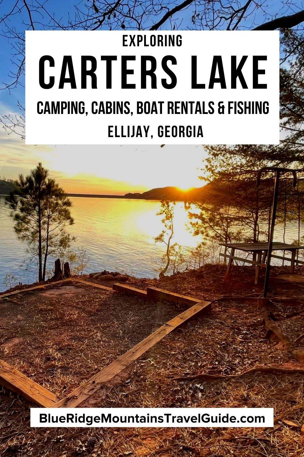 Encompassing over 3,000 acres in Chatsworth and Ellijay GA, with 62 miles of shoreline, Carters Lake is a popular destination for boating, camping, fishing, hiking, and myriad other forms of outdoor recreation.