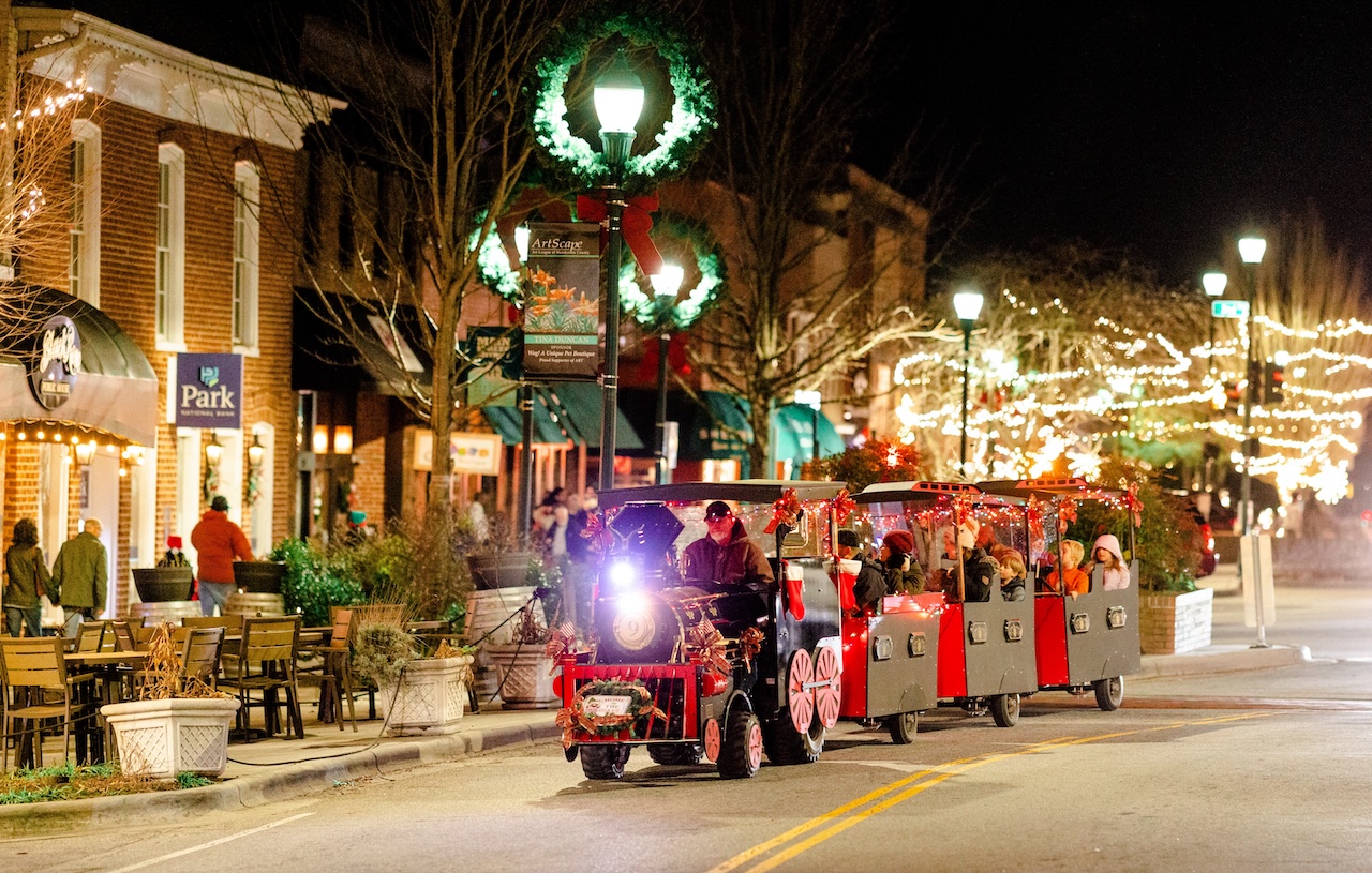 From 5 to 8PM on Dec 20, Mountain Fresh Orchards (one of the best apple orchards in Hendersonville) will offer free mini-train rides departing from the Historic Henderson County Courthouse square.