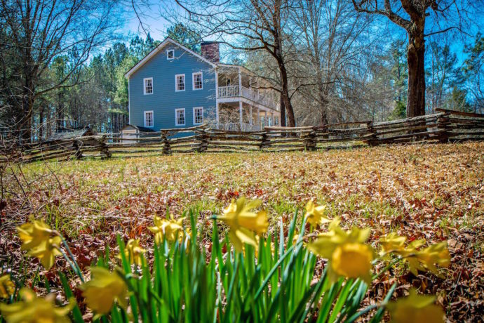 Vann’s Tavern at New Echota was relocated to the site from Forsyth County. Much of the early 1800s building is original, though modern nails and wood were used in its restoration.