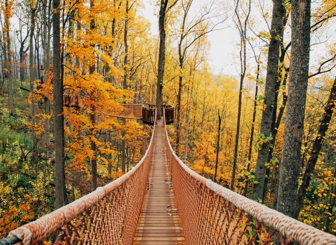 This park features ziplining courses, a roller coaster, the Anavista Smoky Mountain Observation Tower, and a treetop skywalk for primo viewing of Gatlinburg’s fall colors from up high.