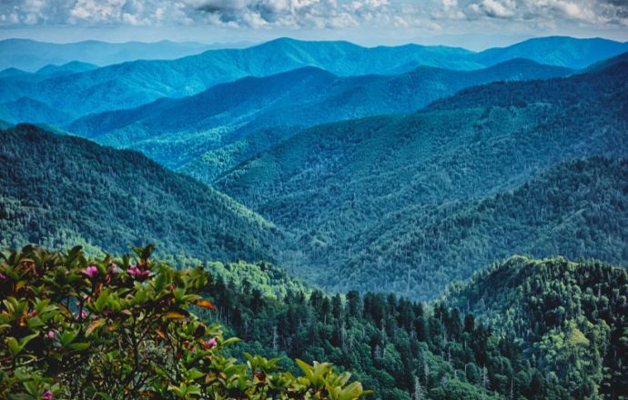 At 5,046 feet above sea level, Newfound Gap Road is the lowest drivable pass through the park. It’s riddled with parking areas that provide stunning scenic views of the Smoky Mountains.