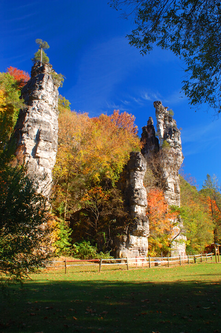 While the Natural Chimneys are just steps from the parking lot, you can also take the Natural Chimneys Loop Trail for awe-inspiring views of the rock formations, the flowing North River, wildlife, and the colorful Fall foliage.
