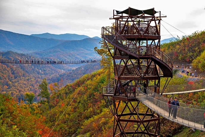 The Gatlinburg SkyTrail– a 0.6-mile round-trip path that connects both ends of the SkyBridge– is an easy and enjoyable walk for the entire family.