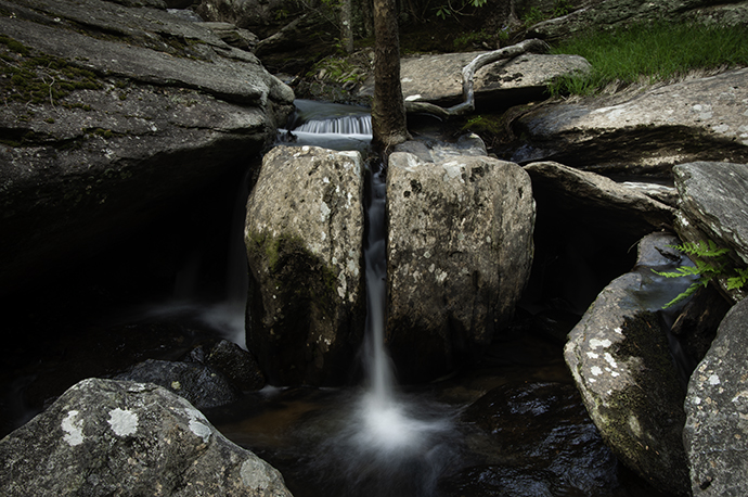 After about a 1/2-mile, you’ll see a stone structure built in the 1920s that has been taken over by moss and nature. This was one of the first modern waste treatment plants in the Blue Ridge Mountains of NC.