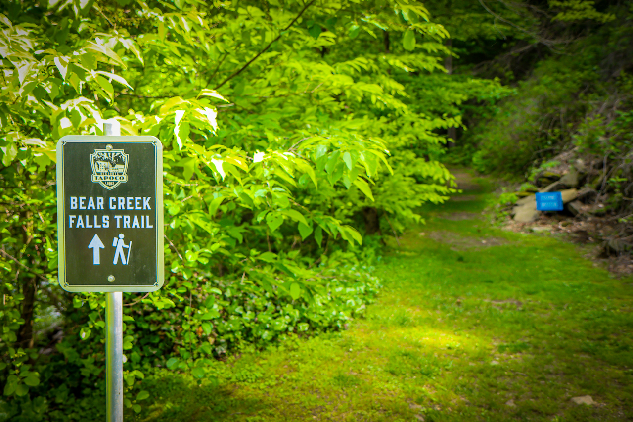 Starting just below the Overlook Cabin, the Bear Creek Falls Trail is a 2-mile loop trail that takes hikers along the Cheoah River to small cascading waterfalls.