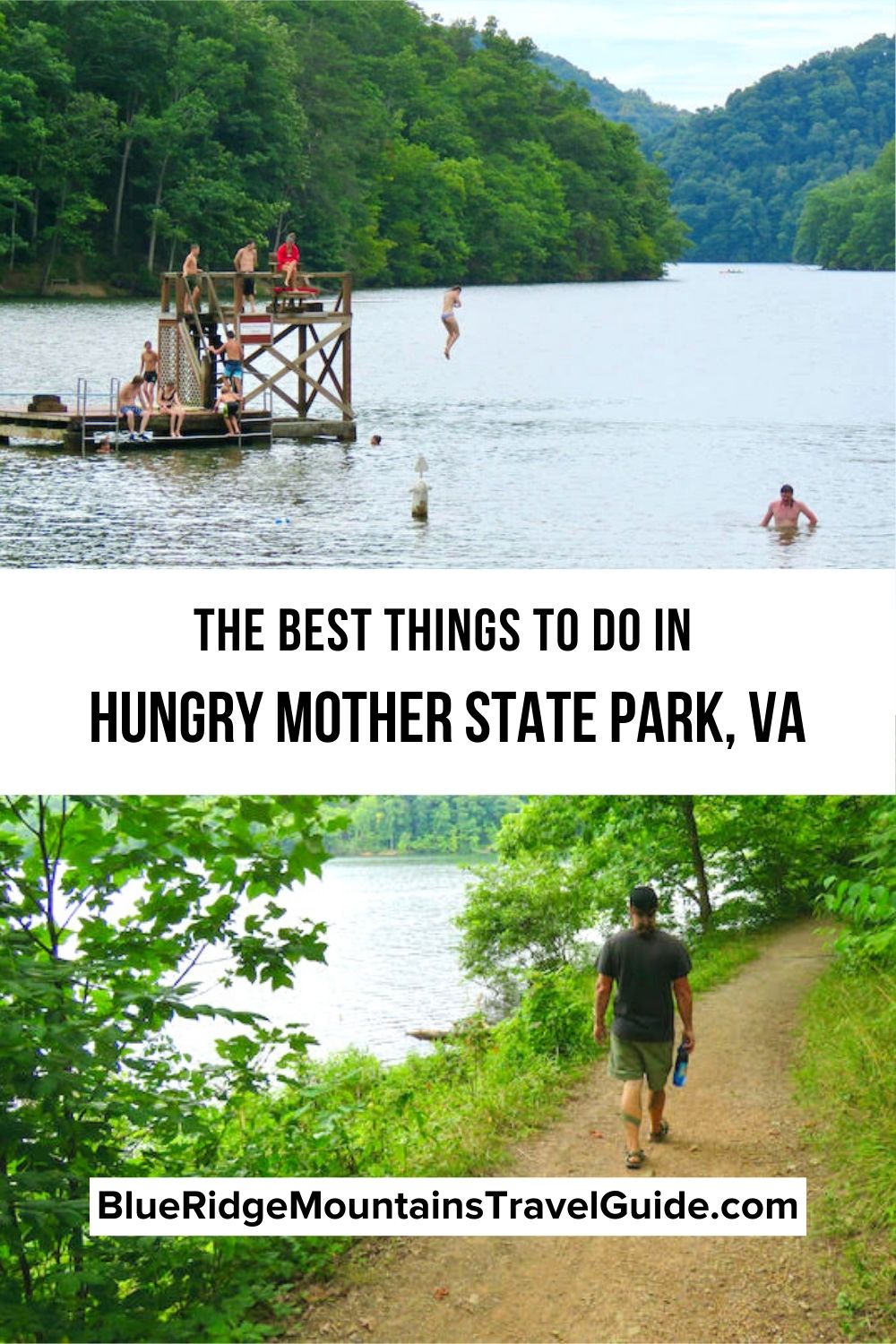 Hungry Mother State Park is one of the six original Virginia State Parks in the Blue Ridge Mountains. It includes over 3,300 acres of wilderness, as well as a 108-acre mountain lake.