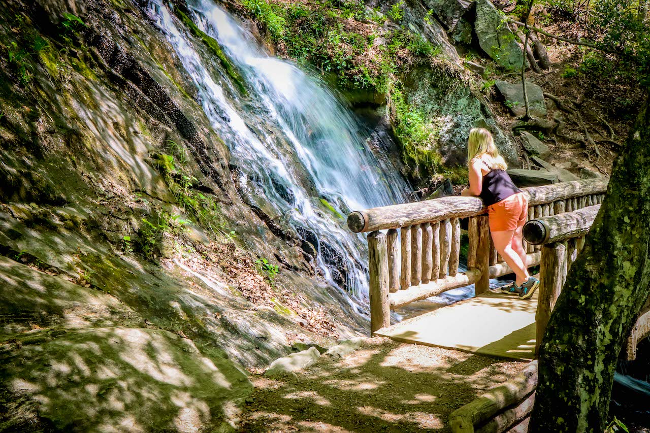 This relatively easy loop trail is just over 2 miles and features Juney Whank Falls, Tom Branch Falls, and Indian Creek Falls. We hiked it in spring and saw loads of wildflowers, butterflies and North Carolina birds along the way.
