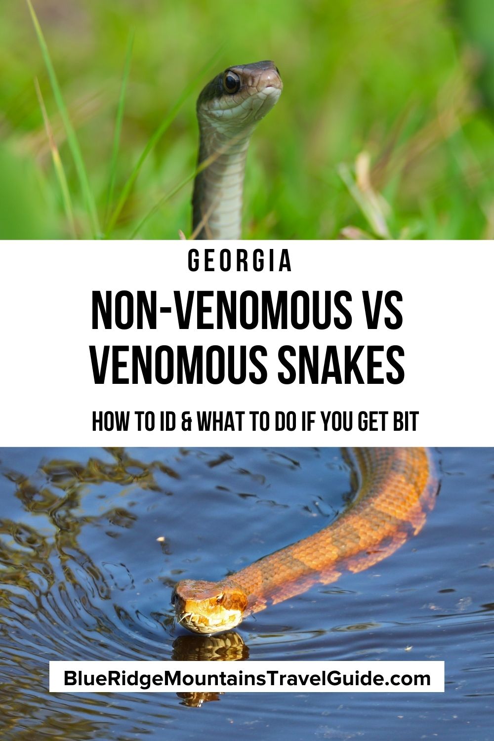 While all snake bites and sightings should be taken seriously, it’s important to be able to tell non-venomous vs venomous snakes apart. First, to help minimize your fear, and second, because it is illegal to kill non-venomous snakes in Georgia.