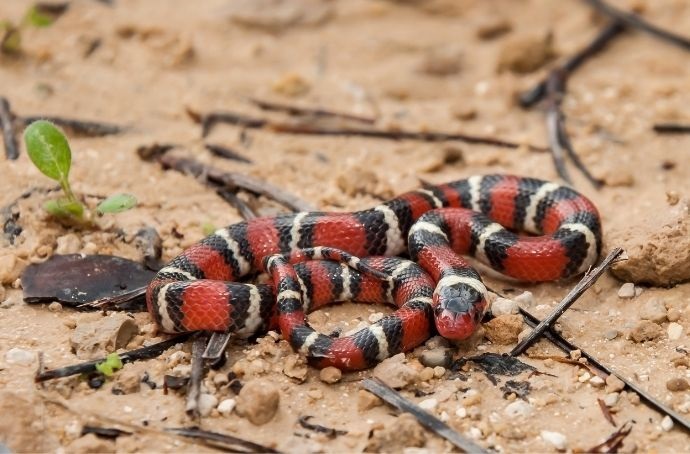 Scarlet kingsnakes and Eastern coral snakes can be confused, as both have bands of yellow, red, and black.