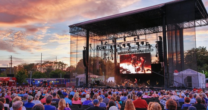 There are street stages and street vendors for enjoying music and food outdoors, while special invited guests play on the Main Stage at the Red Hat Amphitheater.
