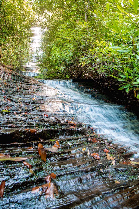 The 1.75-mile trail to Panther Falls and Angel Falls starts on Loop 2 of the Lake Rabun Beach Campground (one of the most beautiful Campgrounds in North Georgia), following Joe Creek upstream.