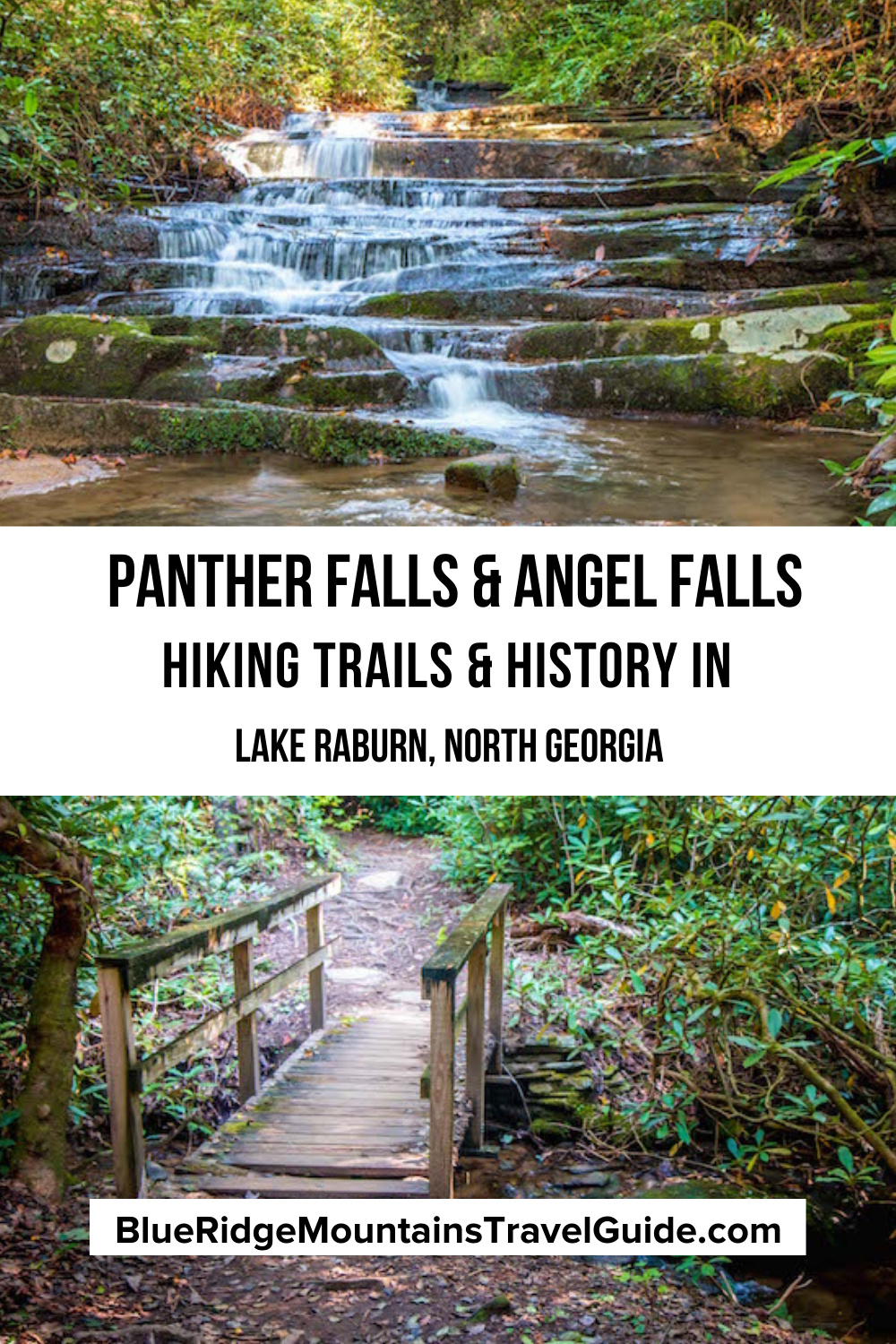 Panther Falls and Angel Falls are located in the Chattahoochee National Forest, near the western end of Lake Rabun in Lakemont, GA.