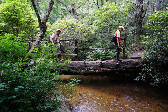 “scene log bridge Pink Beds Pisgah NF ncwetlands KG (1)” by ncwetlands.org is marked with CC0 1.0