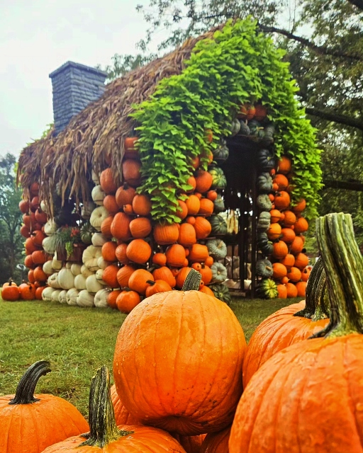 There are little thatched cottages with walls made from pumpkins, rows of hay bales, and dazzling chrysanthemums showing off their Fall colors.