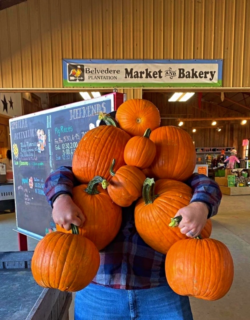 Built in the 1760s, the historic Belvedere Plantation farm is now owned by the Fulks family, who created a Fall Harvest Festival centered around their Great Pumpkin Patch and Great Adventure Maze.