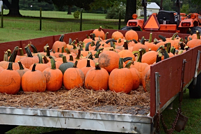 While admiring the fall colors in Virginia, you should definitely hop on one of the passing wagons for a ride down to the Windy Knoll pumpkin patch.