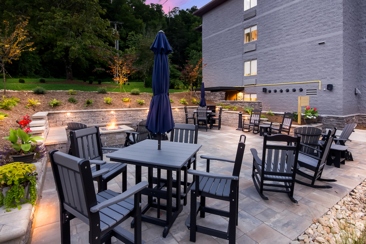 They have an indoor pool, an outdoor fire pit, and plenty of outdoor seating to take in the clean mountain air.