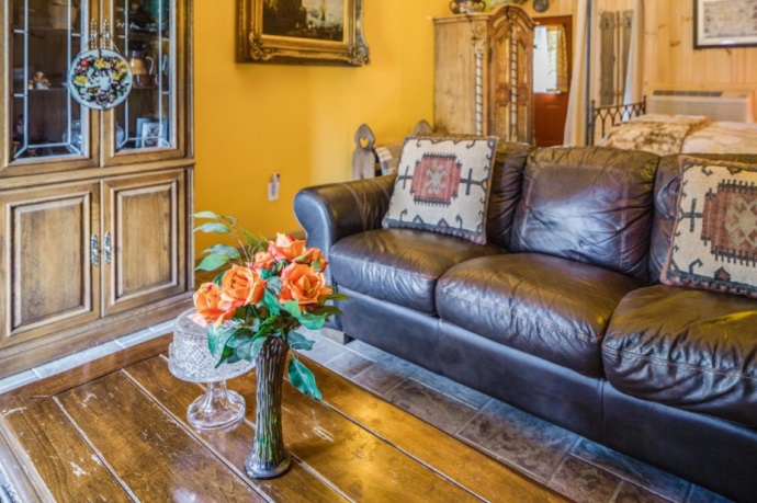 Bumblebee Cabin and Dragonfly Cabin are their two largest. They each have a covered slate patio, European antiques, a portrait gallery, and other unique features.