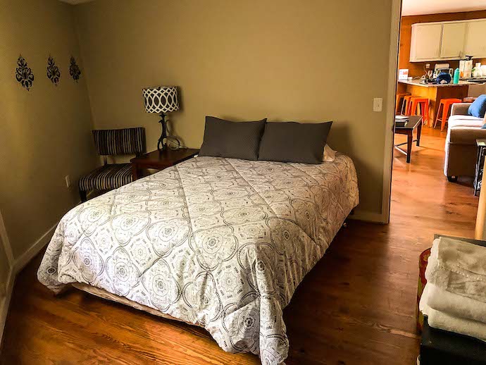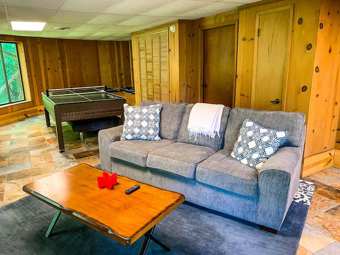 The room features a game table (for checkers and various other board games), cozy couch, Roku TV, ping-pong table, pool table, and washer/dryer. When we weren’t out exploring, we were often downstairs playing pool and ping-pong together as a family.