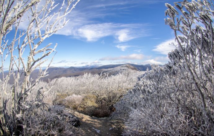 Although the city of Asheville doesn’t tend to get a ton of snow accumulation, many of the 5000- to 6000-foot-tall North Carolina mountains nearby do.