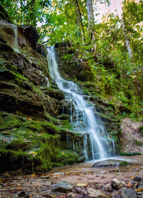 Though it’s only 15 feet high, the waterfall’s whitewater is stunning as it cascades over the rocky ledge into a placid pool below.