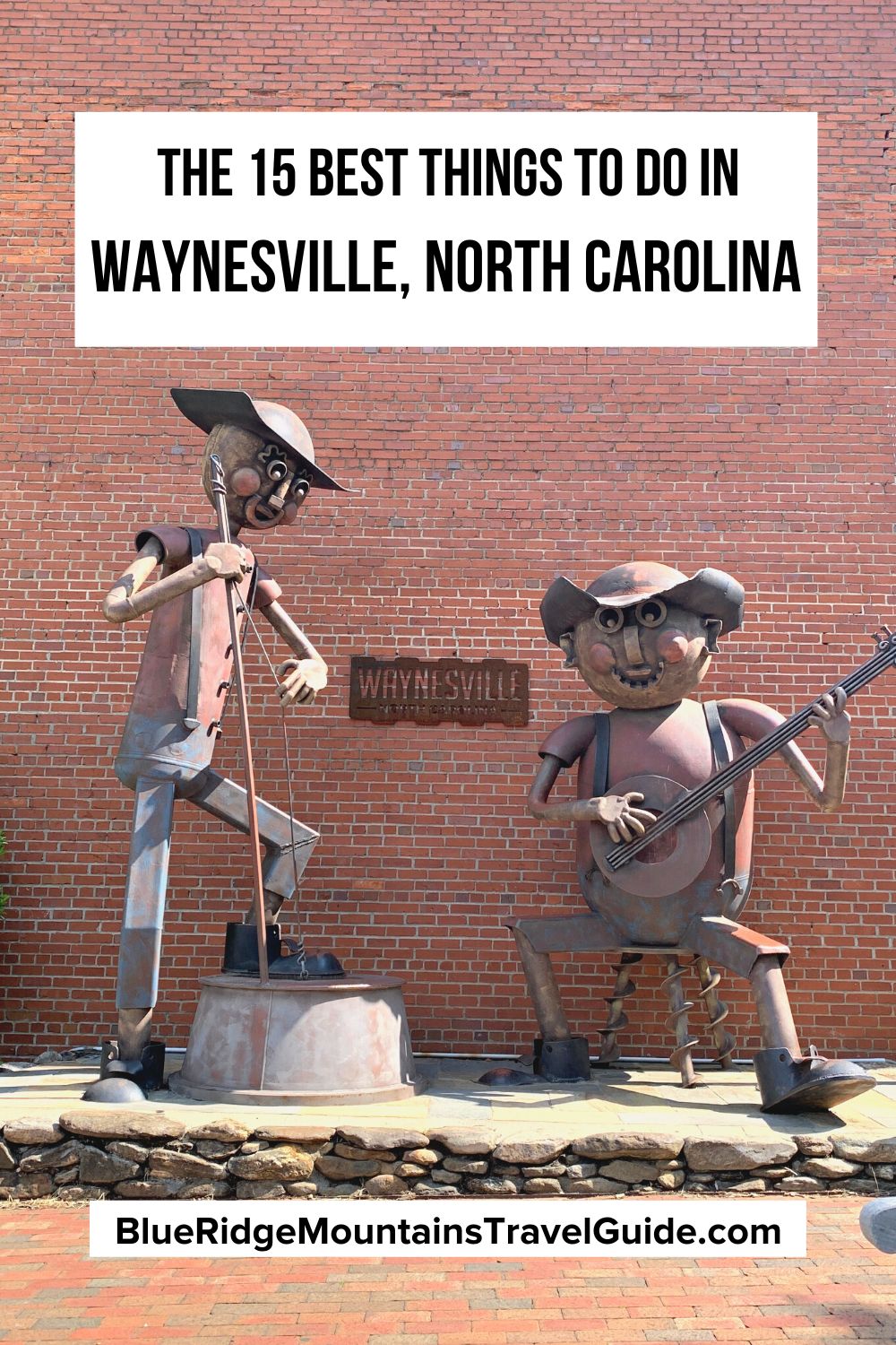 Downtown Waynesville is full of fantastic street art on its Public Art Trail, but none more iconic than the “Old Time Music” sculpture located at 77 N. Main Street.
