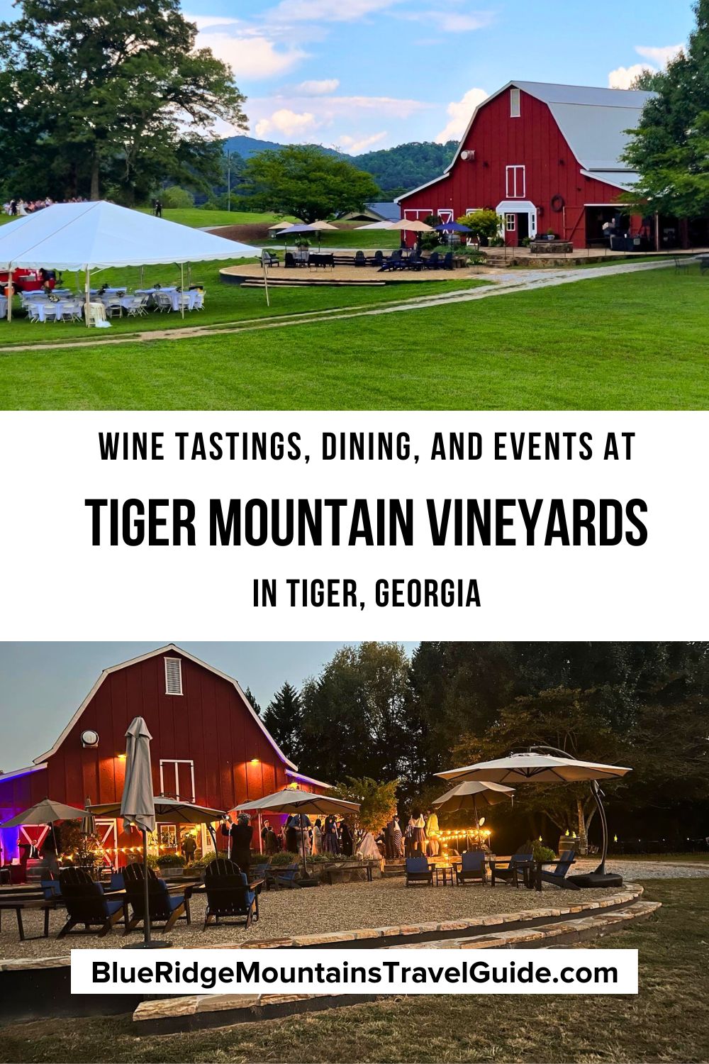 From Downtown Clayton GA, head south on S Main St, which turns into Old 441 S. Follow that for 2.6 miles, and you’ll see the entrance to Tiger Mountain Vineyards on the right.