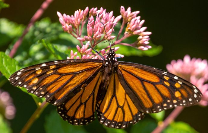 A member of the Asteraceae family, Joe Pye Weed stands tall (up to 10 feet, depending on the species), showing off its dusty, sometimes vibrant pink flowers.