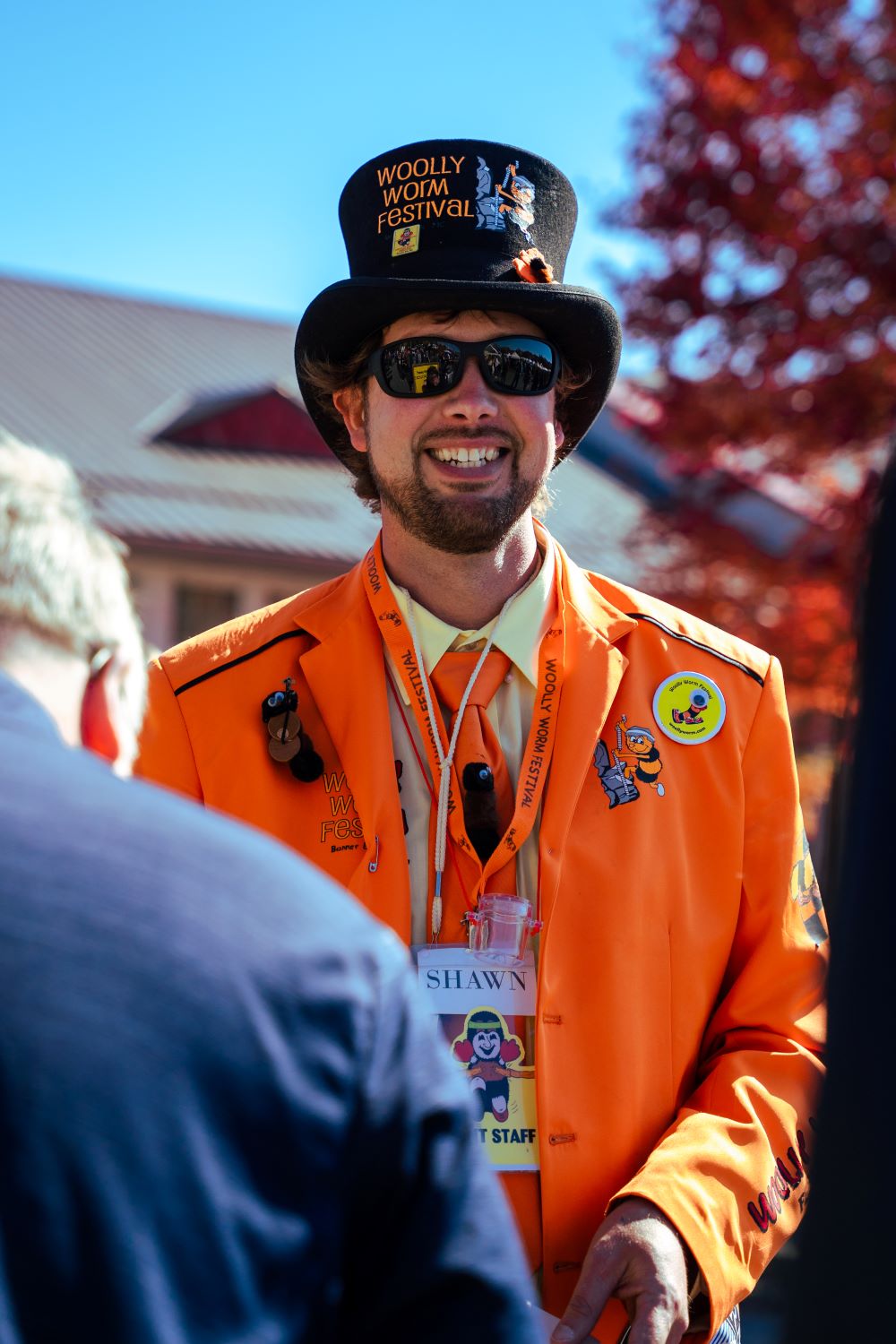 Roy Krege (better known as “Mr. Woolly Worm”) has been there as a vendor since the very first festival as a vendor. He eventually became Mr. Woolly Worm for to entertain kids, and to educate the visitors on the caterpillars.
